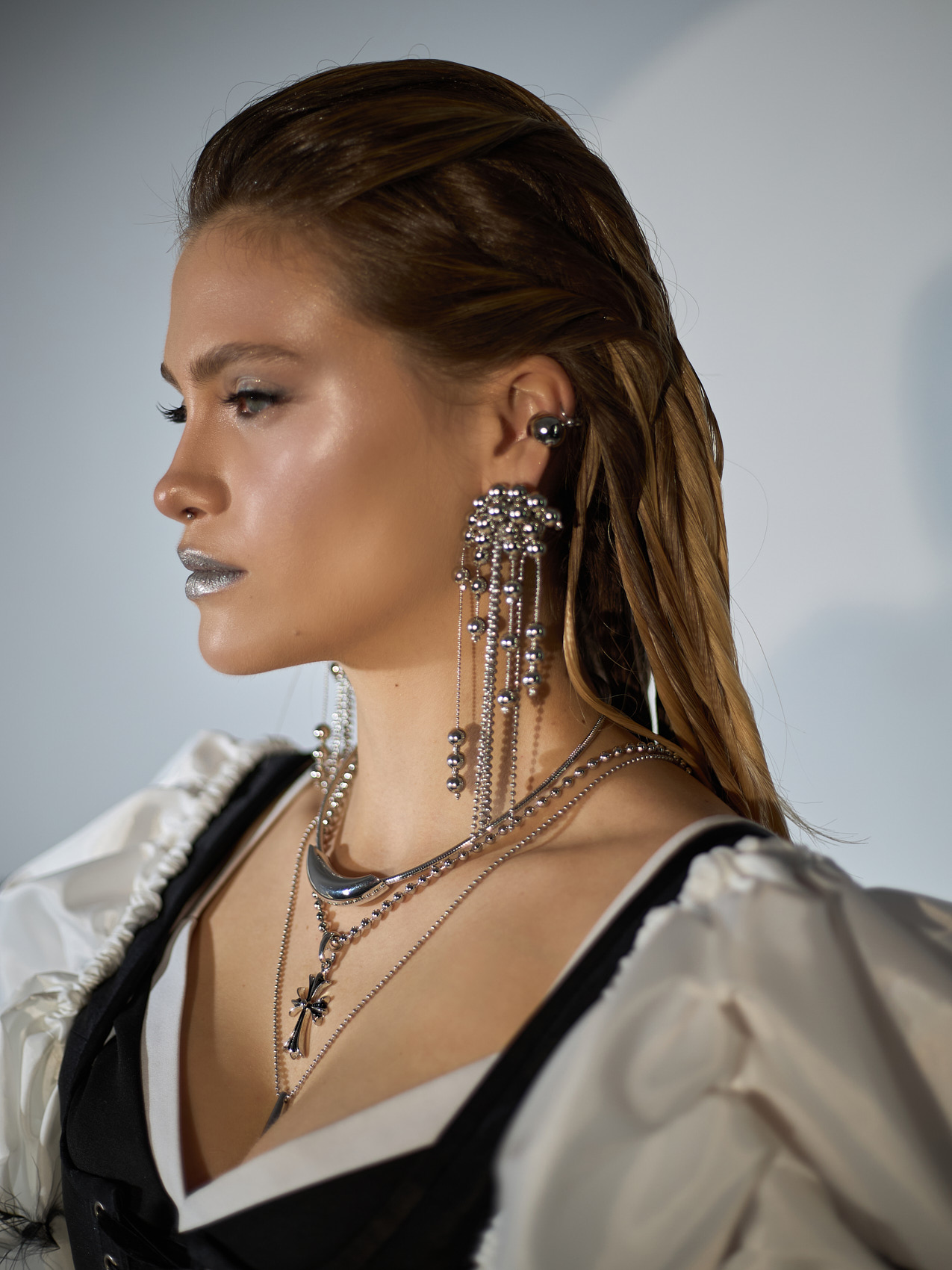 Креативные серьги-пусеты с каскадом сфер различного диаметра