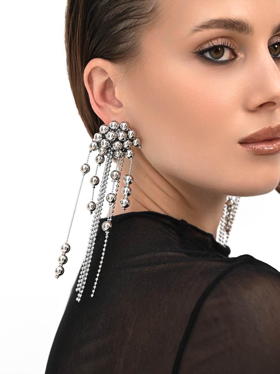 Сферичные серьги-гроздья Серебристый Ювелирный сплав купить в интернет магазине Kalinka
