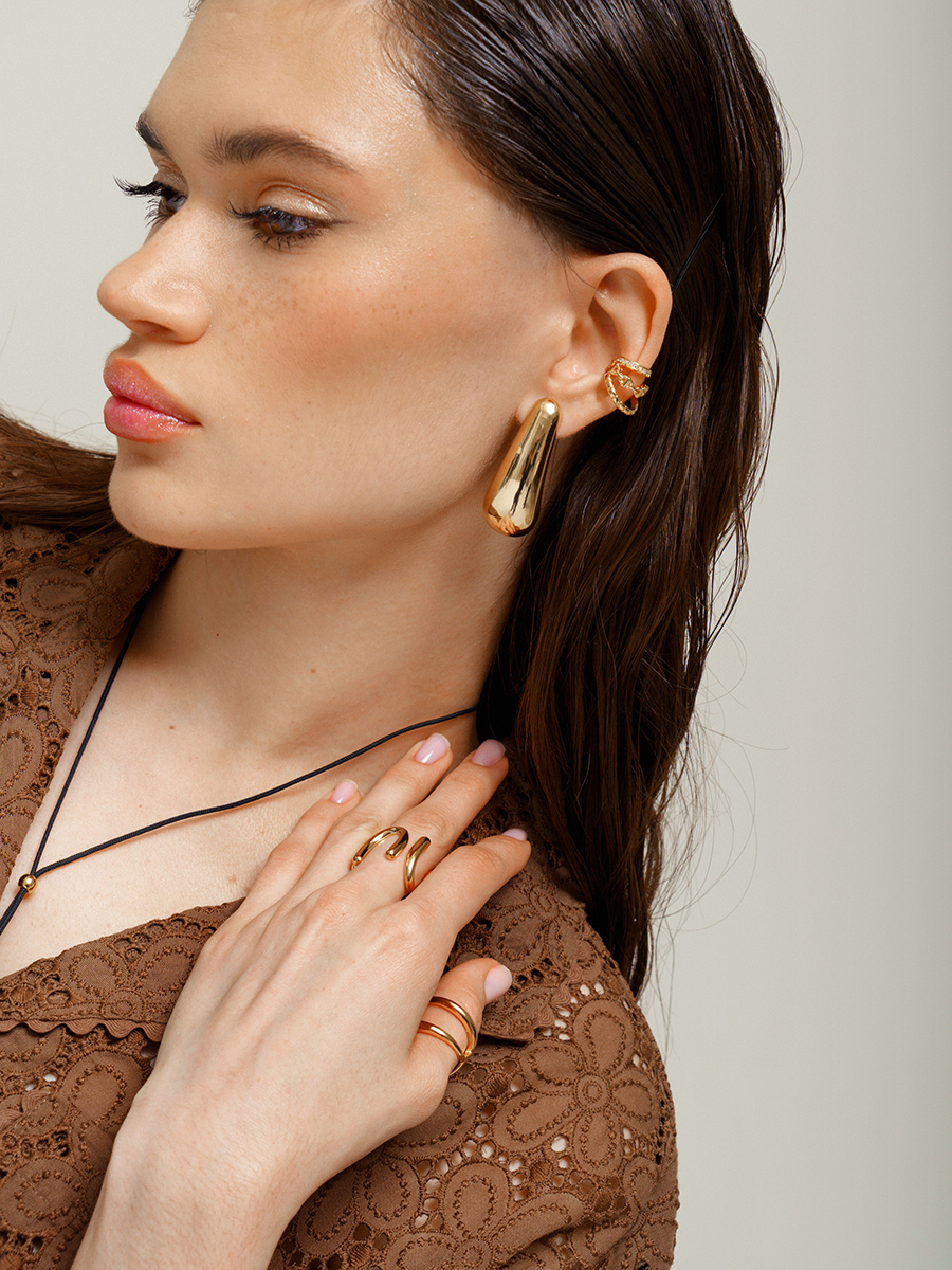 Акцентные удлиненные серьги-капли актуального обтекаемого формата